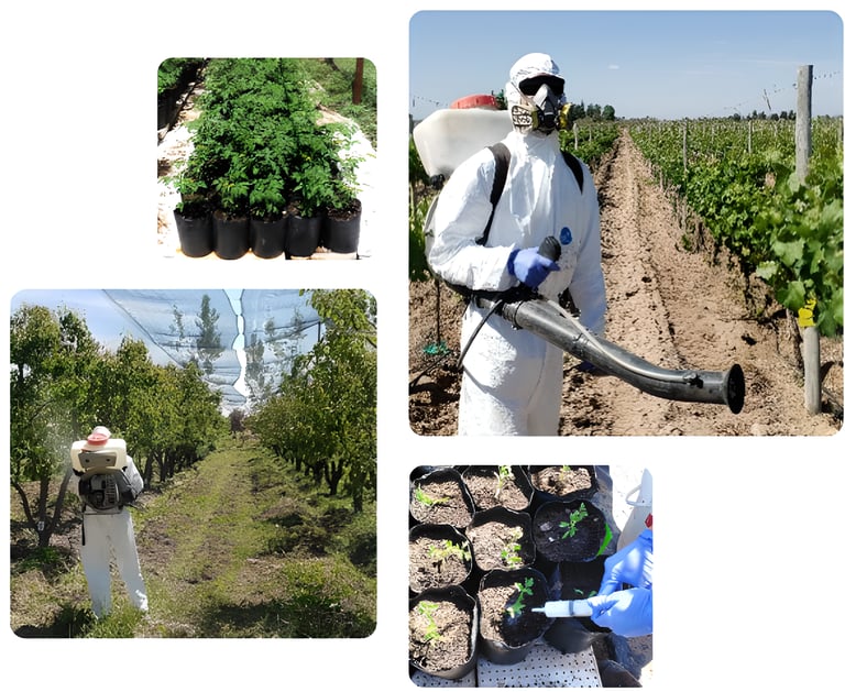 ✓ Realizamos ensayos de insecticidas, fungicidas, nematicidas y herbicidas, in vitro, bajo condiciones semicontroladas y a campo.